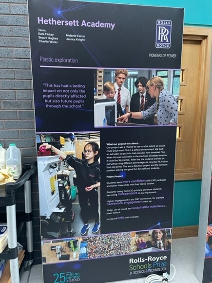 In 2020, Hethersett Academy’s D&T department entered the Rolls-Royce Schools Prize for Science and Technology. The project that they submitted was an exploration in plastics, asking the question “Could we recycle 3D printing filament which had already been printed?”.