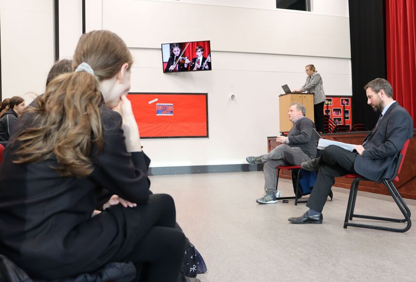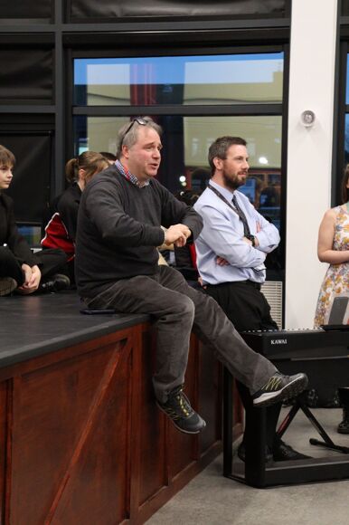 The visit began with Richard giving a talk to the students about his background, education and impressive subsequent career. The students were then given the opportunity to ask questions, and those that are involved in ‘Sister Act’ in March were then given the opportunity to perform songs and scenes to receive Richard’s feedback.