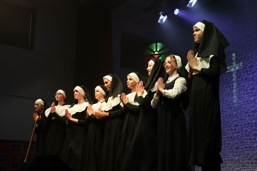 The students were given a taste of what it's like to perform in a professional production, from the initial audition process, through to rehearsals and the final performances. Those that weren’t in the production cast were able to be involved in all aspects that take place behind the scenes including building the sets and scenery, managing the stage, and assisting with costumes and hair and make-up. The production has been an exceptional group effort, including teacher, Miss Leggoe and Year 9 Textiles students contributing to the production by creating all 60 nuns' habits.